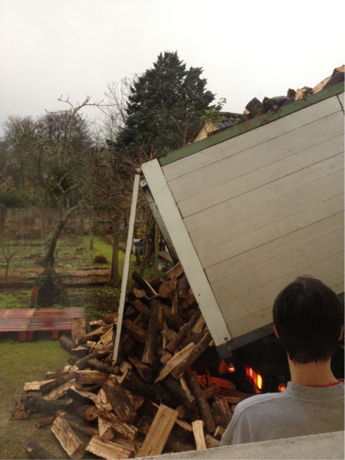 薪のお兄さんはドーンと置いていくだけ。片付けるのは…私達だ!(>_<)