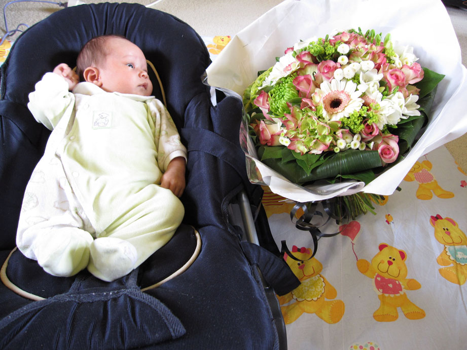 しかも、こんな立派な花束・・・出産があると皆もらっているの?